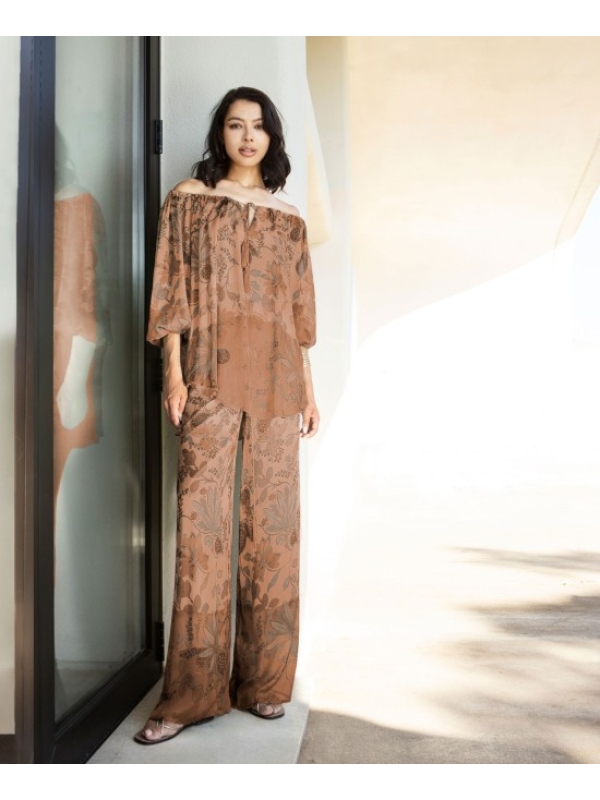 Φόρεμα εξώπλατο εμπριμέ καφέ μόκα