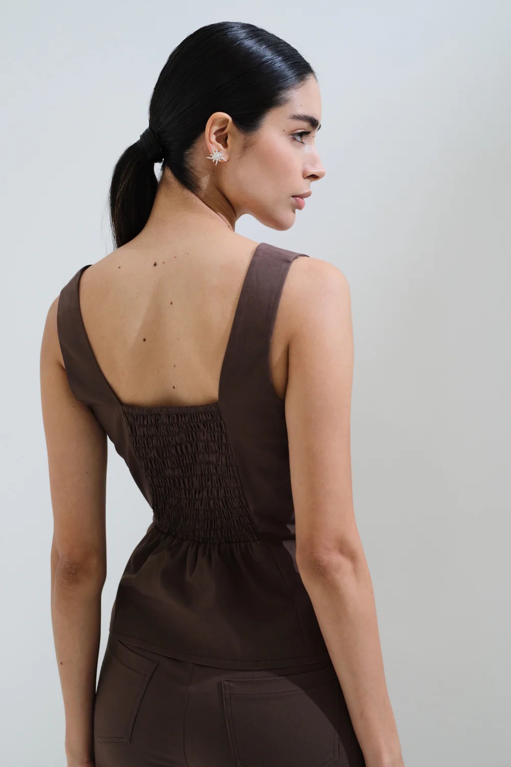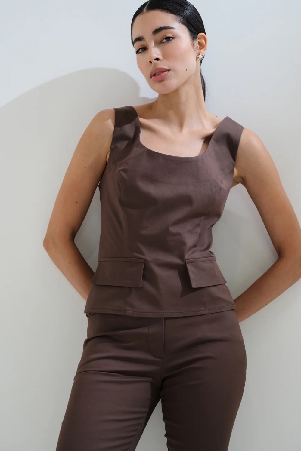 Μπλούζα μονόχρωμη αμάνικη σοκολά