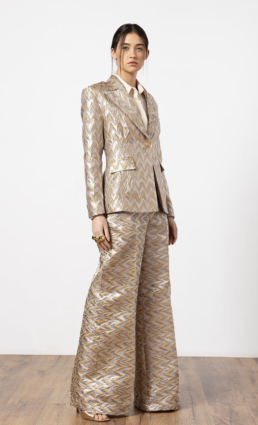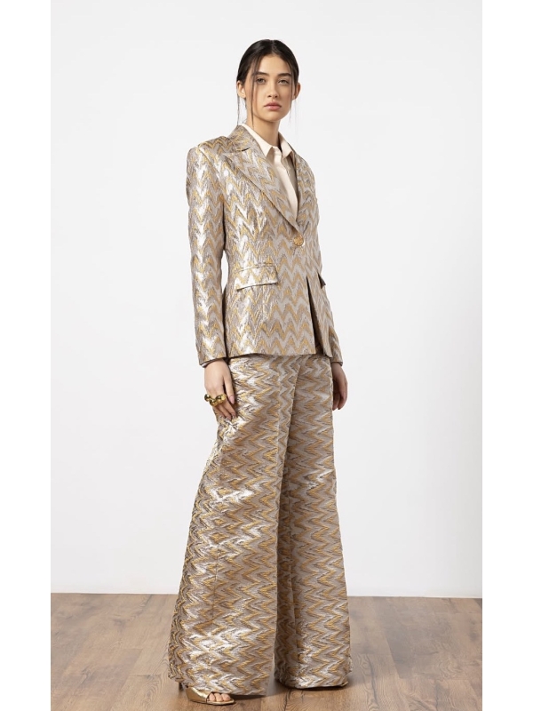 Παντελόνι μπροκάρ με ασημένιες και χρυσές ίνες.