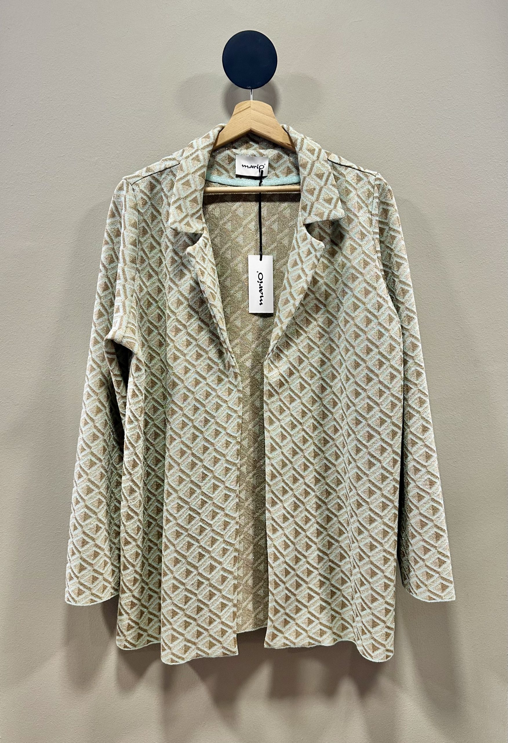 Πλεκτό σακάκι από lurex νήματα με μοτίβο ρόμβους .