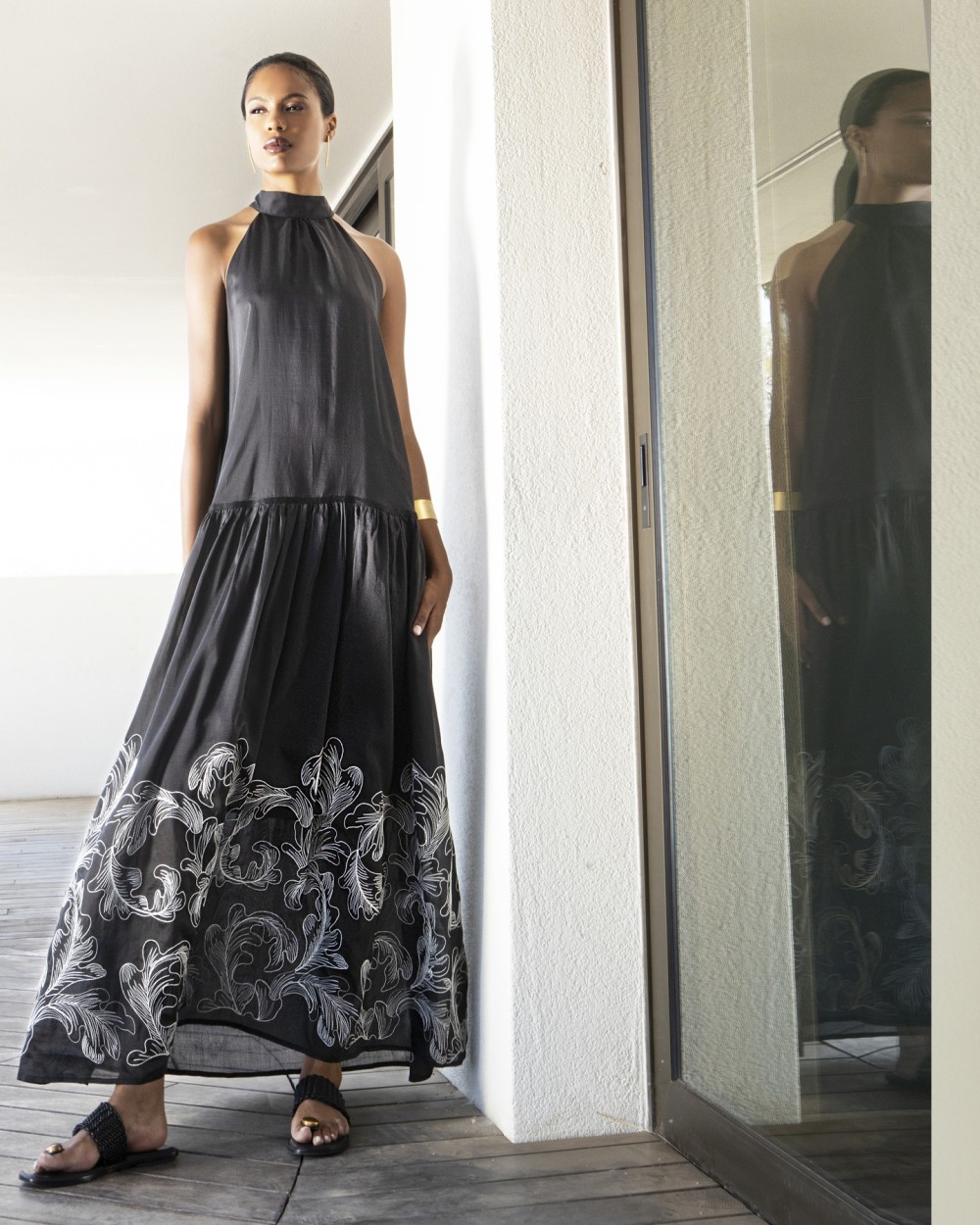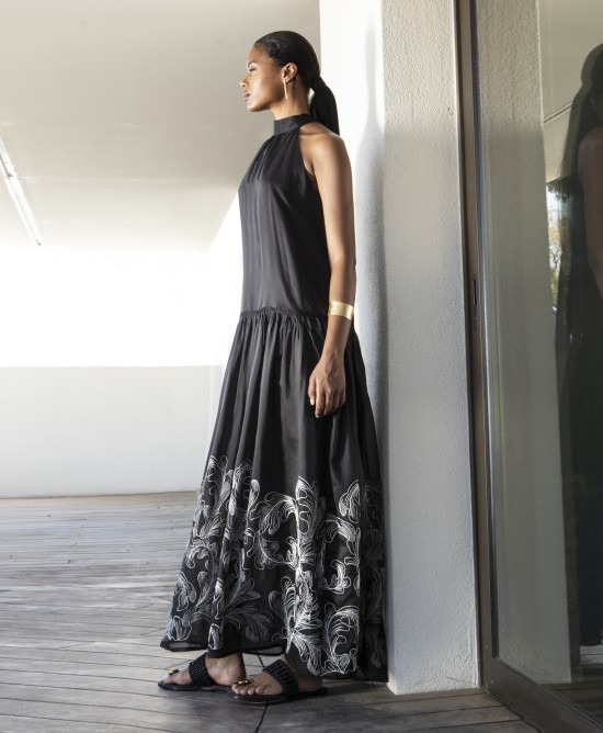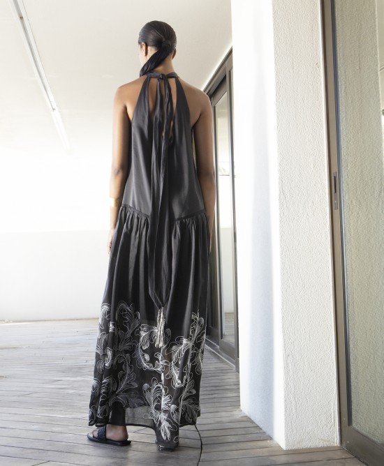 Φόρεμα μαύρο με λευκό κέντημα