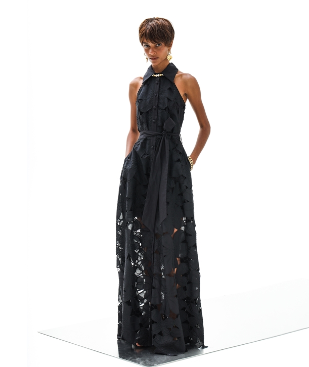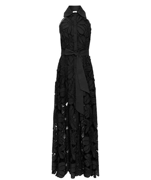 Lace βαμβακερό αμάνικο maxi σεμιζιέ φόρεμα σε Α γραμμή με κλασικό γιακά, ασορτί αποσπώμενη ζώνη, πλαϊνές τσέπες και διακοσμημένο με μπροντερί μοτίβο σε φλοράλ σχέδιο.