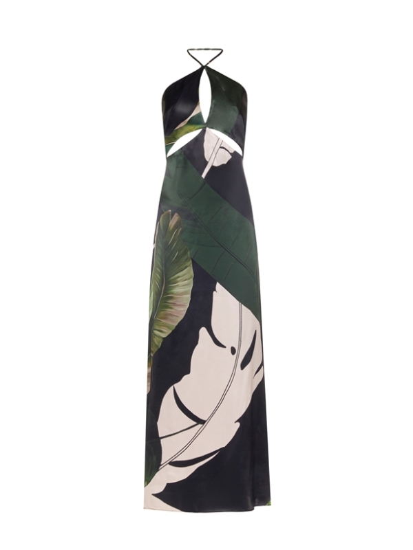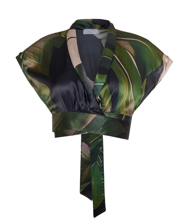 LACE πράσινο εμπριμέ μεταξωτό τοπ